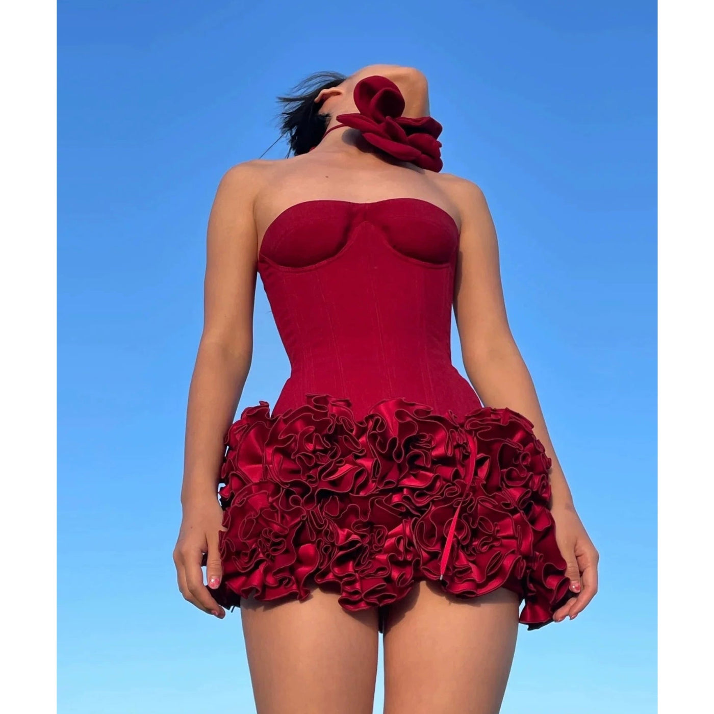 A flattering silhouette, while the rose ruffle adds a touch of romantic sophistication. Ideal for the modern woman who values both grace and style